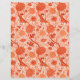 Papier in einem William Morris, Jakobsblütenmuster, Textilmuster - elegant, stilisiert, Chrysanthemen, Sonnenblumen und Blätter, in Weich-Korallenorange und Terrakotta/Rostorange, auf weißem Hintergrund