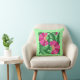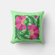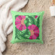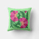 Kissen in einem Vintagen, floralen Muster der William Morris Jakobus, digital verstärkt und farbig, in den Farben Fuchsienrosa und Magenta, mit smaragdgrünen Blätter, auf einem hellgrünen Hintergrund