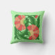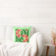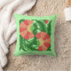 Kissen in einem Vintagen, floralen Muster der William Morris Jakobus, digital verstärkt und farbig, in Korallen- und Mandarinentönen, mit Senfgold angereichert, smaragdgrüne Blätter auf hellgrünem Hintergrund