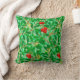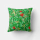 Kissen in einem William Morris Art Nouveau Textilmuster aus lykischen Ästen und Blätter, in Limonen und tiefgrünen Farbtönen, mit roten Lychefrüchten und gelben Blüten, auf einem hellgrünen Hintergrund