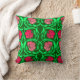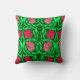 Kissen in einem Vintagen William Morris Textilmuster aus stilisierten Pimpernell-Blume und Blätter - Blume in einem Gefälle von tief bis weich Korallenrosa, mit hellgrünen Blätter, auf einem dunkelgrünen Hintergrund