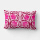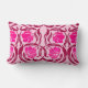 Lumbarkissen in einem Vintagen William Morris Textilmuster aus stilisierten Pimpernell-Blume und Blätter - Blume in einem Gefälle von hell bis dunkelfuchsienrosa, mit Bordeaux, auf pastellrosa Hintergrund