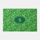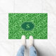 Doormat in einem Vintagen William-Morris-Damast-Muster von Blume und Blätter, in dunkelgrünen Smaragdgrün, auf einem hellgrün geprägten Hintergrund, digital verbessert und farbig, mit Monogramm