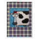 Kuh mit Tomate auf Kopf auf karierter Karte