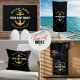 Fügen Sie Ihrer Zuhause mit diesem personalisierten Kissen eine Touch nautischen Charmes hinzu! Dieses Kissen mit klassischem Ankerdesign auf einem reichen schwarzen und goldenen Hintergrund eignet sich hervorragend für Bootsbesitzer, Seehäuser oder alle Lieben des Küstenstyles. Personalisieren Sie es mit dem Namen Ihres Bootes für eine wirklich einzigartige Touch.