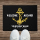 Machen Sie eine Erklärung mit diesem stilvollen nautischen Black and Gold Doormat! Ein schöner, detaillierter Anker ist das Herzstück, personalisiert mit dem Namen Ihres Bootes und einem "Willkommensgruß". Die perfekte Ergänzung zu jedem Boot, Dock oder Zuhause.