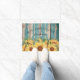 Willkommen Aquarellblume und rustikales Holz Fußmatte