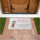 Eine nette Begrüßungsmatte für Baba's Haus mit einem kleinen Mädchen, das traditionell gekleidet ist und ihre Perogieschüssel umarmt.