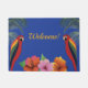 Willkommen bei tropischen Papageien und Hibiskus-B Fußmatte