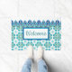Willkommen Doormat Türkis & Blau Fliesen Design Fußmatte