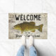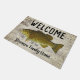 Willkommen auf der Zuhause "Ihr Familienname" oder wechseln Sie in die Hütte. Eine Begrüßungsmatte zum Thema Angeln für die Familie, die Lieben zum Fischen. Das Design ist mit einem gigantischen Bass und einem rustikalen Hintergrund ausgestattet. Diese Begrüßungsmatte ist perfekt für Zuhause, Hütte, Anhänger, Angelhütte etc.