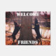 Diese Begrüßungsmatte verfügt über zwei schwarz-bräunliche Münzhunden, die am Ufer des Flusses Little Wabash im Süden von Illinois mit den Worten WELCOME FRIENDS zittern.