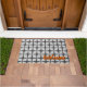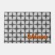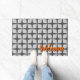 Orangenwillkommen auf einem grauen Diamantmusterhintergrund.