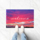 Willkommen Hot Pink Blue Clouds Sunset Foto Modern Fußmatte