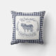 Stilvoll gezapftes Kissen mit dem Zentrum "Welcome to the Farmhouse" Text mit Silhouetten von Bauerntieren und einem blauen Gingham Hintergrund