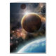 Gewartet zur Räumung in geostationärer Umlaufbahn, um den Zuhause-Planeten verlassen und neue Welten im Weltraum zu erkunden. Digitales Kunstwerk von Liz Molnar. Planeten, Sterne, Weltraumwolken, Lichter wurden mit einfachen Fotoshop-Effekten und Pinseln gemacht, Planeten-Oberflächen aus Fotos geschaffen.