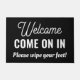 Für Zuhause oder Geschäftstreffen ist ein individueller Teppich im Freien mit dem Titel "Willkommen, komm rein, wische dir die Füße!" erhältlich.