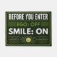 Bevor Sie Ihre Zuhause, verlass die Last des Alltags an der Tür. Diese Tür sendet eine klare, aber charmante Botschaft aus: Ego off, Lächeln on! Der minimalistische Stil passt perfekt zu den modernen Eingangsbereichen, und die Kombination aus einem einfachen serifenlosen Schriftart und einem fröhlichen Sonnensymbol bringt Wärme in Ihre Zuhause. Das Schwarz-Weiß-Design kann individuell an Ihre Zuhause-Farben und persönlichen Wünsche angepasst werden. Diese Matte bringt Sie in eine gute Stimmung direkt vor der Tür - für Sie, Ihre Freunde und Ihre Gäste.