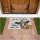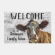 Willkommen auf der Zuhause "Ihr Familienname" oder wechseln Sie in die Hütte. Eine Milchkuh-Begrüßungsmatte für den Familienbetrieb. Das Design zeichnet sich durch eine prächtige hübsche Holstein Kuh aus. Personalisieren Sie Ihren Familiennamen.