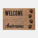 Herzlich willkommen bei diesem niedlichen Haus! Personalisieren Sie mit Ihrem Familiennamen . Welcome Doormat - Dog Paw Print Floor Mat