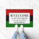 Stilvolle, patriotische BEGRÜSSUNGSMITTEL mit dem Wortlaut WELCOME & BE BLESSED ALLE, DIE HIER EINGREIFEN (AUSSER TRESPASSERS). Der Hintergrund der PAN AFRICAN Flag ist rot, schwarz und grün. Der gesamte Text ist KUNDENBAR, sodass Sie den Text so ändern können, dass er Ihren Bedürfnissen entspricht, z.B. Familienname, Familienmotto, inspirierendes Zitat hinzufügen.