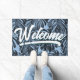 Willkommen Tropical Boho Blue Jungle Leaves Fußmatte