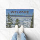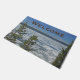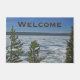Die Eingangstüre dieses Hauses mit einem wunderschönen Foto aus dem Yellowstone Nationalpark lädt zum Entspannen ein. Dieses Foto vereint die Schönheit eines großen, teilweise eingefrorenen Sees, ergänzt durch große immergrüne Bäume und einen blauen Himmel. Der hellblaue Himmel bietet den Hintergrund für "Willkommen", der nach Ihren Wünschen angepasst werden kann.