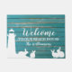 Grüßen Sie Ihre Strandhausgäste mit dieser reizend kundenspezifischen Türmatte, die 2 Linien kundenspezifischen Text und Ihr NamensSet gegen einen Hintergrund mit einem verwitterten hölzernen Blick kennzeichnet. Groß für eine Hütte, ein Seehaus, ein Strandhaus oder Küsteneinen küsterückzug.
