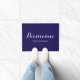 Elegante blaue und weiße französische Fußmatte. Sie können sie mit Ihrem Familiennamen leicht besonders anfertigen. Merken Sie, dass auf französisch Sie sagen "Chez les Anderson" und nicht "Chez les Andersons" zu gemeinem "am des Robinsons Haus." Es ist korrekt auf französisch, das "s" nicht am Ende hinzuzufügen. Sie können "Chez Anderson" oder "Famille Anderson" auch einfach schreiben, wenn sie bevorzugt werden. Die Hintergrundfarbe ist kundengerecht.