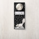 Dieser Türhänger ist schwarz mit weißen Musiknoten und einer winzigen weißen Katze, die über Klaviertasten geht. Passen Sie Ihren Text auf der Vorder- und Rückseite mit der Vorlage im weißen Banner an.
