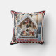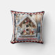 Kissen mit einem Gemälde eines Wintervogelhauses in einem schneebedeckten Wald. Schön zu Weihnachten.