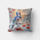 Winter Blue Jay Singing auf einem Roten Berry Tree Kissen
