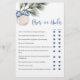 Winter Chinoiserie Brautparty Games Card, Weihnachts Brautparty Games Card.
