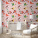 Delightful winter birds and festive colors create a cozy Christmas atmosphere in any kid’s room. This playful wallpaper brightens nurseries, bedrooms, or holiday décor spaces.