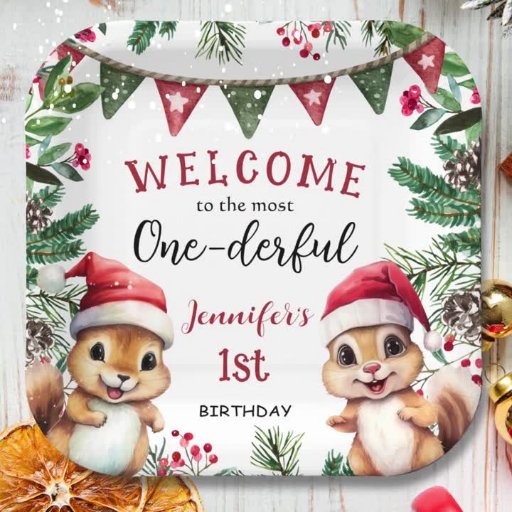 Dekorieren Sie mit dem Charme des Waldes! Erleben Sie Ihr 1. Weihnachtsfest mit unserem "ONEderful Eichhörnchen Christmas Party Banner" Shop und Set Sie die Szene für einen zauberhaften Wintergeburtstag!