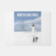 Winter Greetings. Female elf walking in the snow Fußmatte