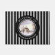 Aquarellmalerei einer Winterszene in Neuengland, ein ruhiger Tag, an dem der Schnee gerade in den Boden gefallen ist. Sehr malerisch und friedlich. Das Design hat einen schwarzen Rahmen mit personalisierten Texten auf der oberen und unteren Seite. Das Design hat ein vertikales grau-schwarzes Streifen-Muster. Anpassbar in Zazzle mit eigenem Text für ein personalisiertes Design. Karo aus meinem Shop für passende Artikel!