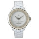 Weiße Damen Email Strassuhr