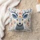 Farbenfrohe Wintersonne mit Laub. Yuletide wirft Kissen. Feiern Sie die Saisonwende mit diesem sonnigen Kissen, das mit einem friedlichen blauen Hirsch inmitten von Blumen- und Blattelementen in einem sanften Volkskunst-Stil besticht.