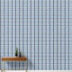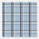 A plaid tartan pattern in calming muted neutral colors. Stripes in yellow, gray, white, and navy blue are arranged on a slate blue-gray background.