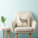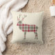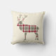 Wintertartan kariertes Hirschkissen. Tartan Design von Pine And Berry mit einem Reh in Cranberry rot, tan, Kohle und Elfenbeintartan auf einem Elfenbeinfarbenhintergrund. Das Hinterteil dieses Designerkissens ist reich an Cranberry rot. Ideal für Weihnachten, Urlaub, Weihnachten dekoriert in einer rustikalen, woodsy, volkstümlich, Landleben, wintery (wintery) landschaftlich, oder Wald Stil. Diese Silhouette des Hirsches ergänzt die Dekoration mit anderen Tieren mit Geweihen wie Rentieren, Elch, Antilope und Elche.