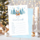 Elegantes und raffiniertes "Baby word cramble" Spiel, entworfen für eine winterliche festliche Babydusche. Mit einem charmanten Teddybär, der einen niedlichen Winterhut und Schal trägt und einen blauen Ballon hält, umgeben von schneebedeckten Kiefern und dem Baby-Blue Gingham-Muster hinten, fügt dieses klassische Spiel Ihrer Veranstaltung eine Touch zeitlosen Stils und Spaß hinzu. Ideal für die Unterhaltung der Gäste und für die Gestaltung von Erinnerungen, ist es eine ideale Ergänzung zu einer süßen und hübschen Babydusche. Antworten: 1. Windeln 2. Rattle 3. Schnuller 4. Formel 5. Schwangerschaft 7. Rolle 8. Kindersitz 9. Flasche 10. Kinderzimmer