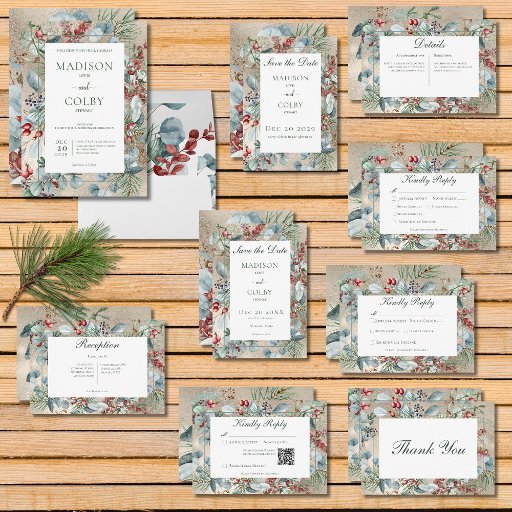 Winter Christmas Greenery Gold Wedding Suite CardsDesignt von Kathe Santillo