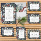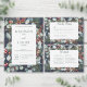 Dieses Design umfasst Kiefern, Eukalyptus, rote und blaue Beeren und andere grüne Blätter, die einen goldenen Rahmen mit einem dünnen Imitat und eine weiße Textbox umgeben. Es ist Teil der Winter Weihnachtsgrün Hochzeitssuite von Karten erstellt von Simply Farmhouse Press.