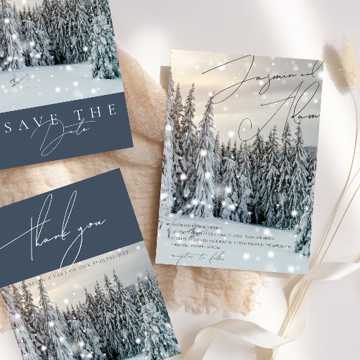 Winter Wonderland Woodland Snowflakes Script Hochzeitseinladungen. Treten Sie ein in ein winterliches Wunderland der Bezauberung mit unseren malerischen Woodland Pine Trees Wedding Einladungen, wo die ätherische Schönheit der schneegeküssten Landschaft die Bühne für Ihre rustikale und naturlich inspirierte Feier Set. Tauchen Sie ein in den Zauber einer Winterwunder-Hochzeit, denn der glitzernde Schnee bedeckt die Landschaft und schafft so eine ruhige Kulisse für Ihren besonderen Tag. Mitten in der knusprigen, frostigen Luft tauschen Gelübde im Herzen der Natur aus, umgeben von dem Charme einer weihnachtlich inspirierten Umgebung. Diese Einladungen erwecken das Wesen einer traumhaften Winterfeier und laden Liebende ein, sich auf eine atemberaubende Reise der Liebe und Freude zu treffen.