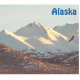 Ein Glatzenadler fliegt in der Nähe der schneebedeckten Chugach Range bei Anchorage, AK. Es erscheint auch der Text "Alaska" mit individualisierbarem Text.