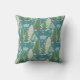 Ein farbenfroher Winterwald mit gemustertem Rotfuchs-Kissen mit einem hübschen aquamarinen blauen Himmel, Schneeflocken, Wolken, immergrünen schneebedeckten Bäumen und kleinen roten Füchsen!