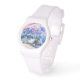 Uhr, Kinderuhr aus Edelstahluhr mit lila Lederarmband