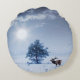 Winterlandschaft in blauer Farbe. Einmaliger Baum Rundes Kissen
