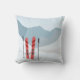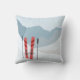 Abstrakte Winterlandschaft mit Panoramablick auf die Berge, rote Skiausrüstung, Pfad und Himmel